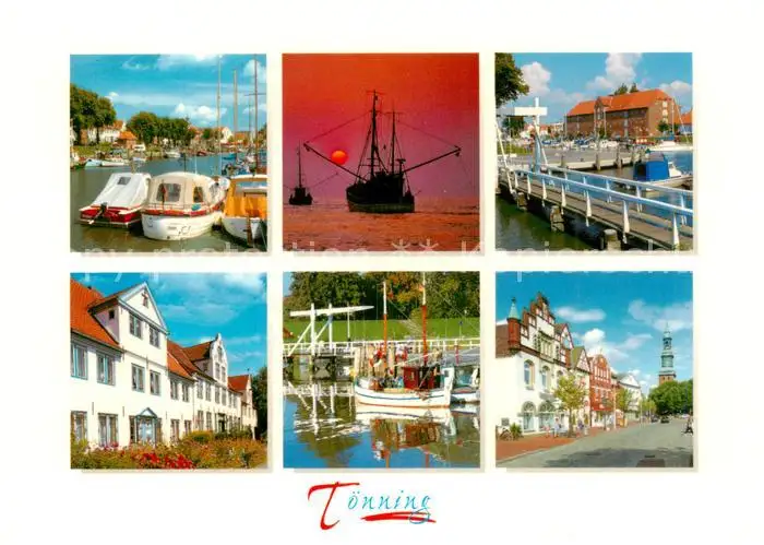 AK / Ansichtskarte 73839731 Toenning_Nordseebad Bootshafen Fischkutter Bruecke Ortsmotive Toenning_Nordseebad