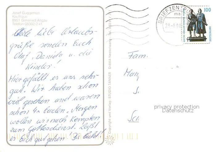 73839813 Goerisried_Goerisried Panorama Wildberg Wanderweg Grusstafel Goerisried Goerisried postalisch gelaufen 1998 Erhaltung siehe scans [FriedD77] [Frierer ]