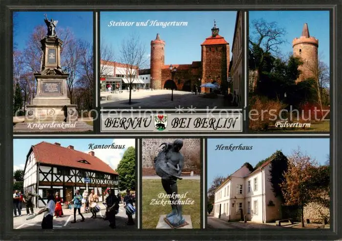 AK / Ansichtskarte 73840105 Bernau_Berlin_Mark Kriegerdenkmal Steintor und Hungerturm Pulverturm Kantorhaus Denkmal Zickenschulze Henkerhaus