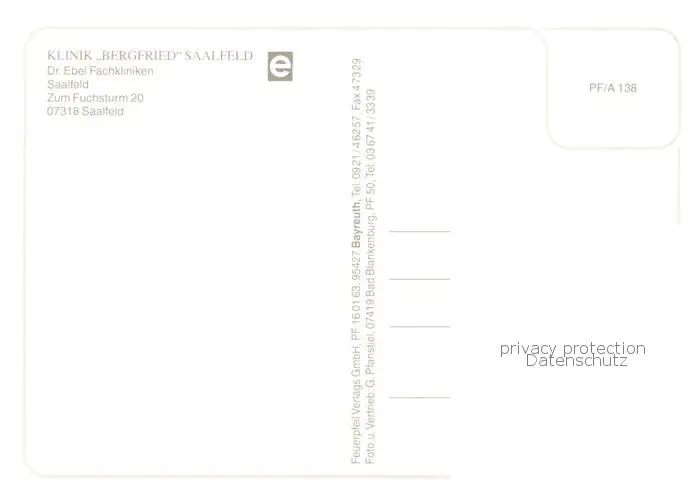 73840482 Saalfeld_Saale Klinik Bergfried Dr. Ebel Fachkliniken Saalfeld_Saale postalisch nicht gelaufen nach 1965 Erhaltung siehe scans [FriedD77] [Frierer ]