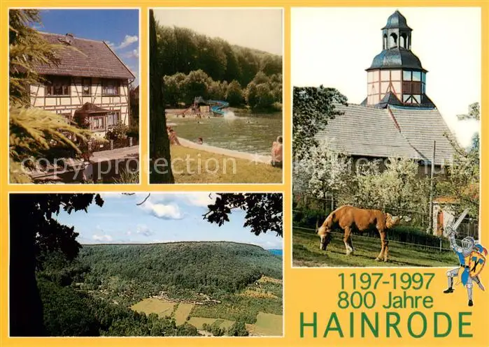 AK / Ansichtskarte 73840486 Hainrode_Hainleite Panorama Fachwerhaus Freibad Ortsmotiv 800 Jahre Jubilaeum Hainrode_Hainleite