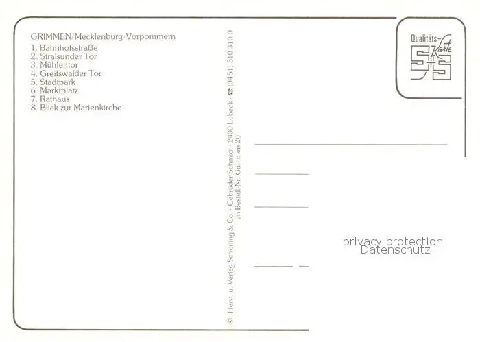 73840500 Grimmen Bahnhofstrasse Stadttore Stadtpark Marktplatz Rathaus Marienkirche Grimmen postalisch nicht gelaufen nach 1965 Erhaltung siehe scans [FriedD77] [Frierer ]