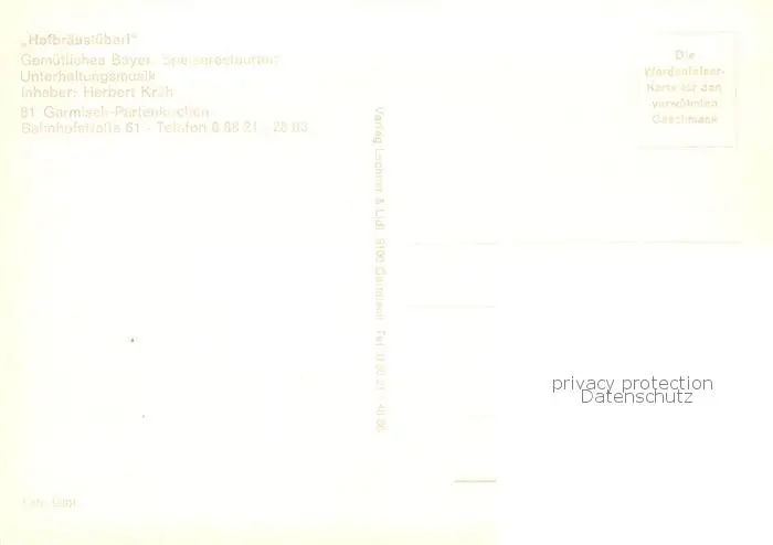 73840542 Garmisch-Partenkirchen Hofbraeustueberl Gaststaette Restaurant Garmisch-Partenkirchen postalisch nicht gelaufen nach 1965 Erhaltung siehe scans [FriedD77] [Frierer ]