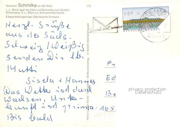 73840806 Schmilka Grenzort an der Elbe Saechsische Schweiz Grosser Winterberg Schrammsteinkette Elbsandsteingebirge Schmilka postalisch gelaufen nach 1965 Erhaltung siehe scans [FriedD77] [Frierer ]