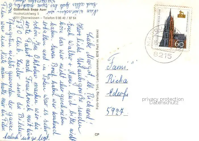 73841410 Oberwoessen Gaestehaus Sepp Auer Oberwoessen postalisch gelaufen nach 1965 Erhaltung siehe scans [WerneD78] [WernPID7 ]