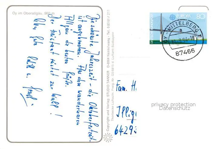 73841454 Oy-Mittelberg Fliegeraufnahme Oy-Mittelberg postalisch gelaufen 1994 Erhaltung siehe scans [WerneD78] [WernPID7 ]