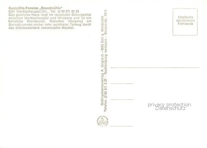 73841483 Marktschorgast Gaststaette Pension Grundmuehle Marktschorgast postalisch nicht gelaufen nach 1965 Erhaltung siehe scans [WerneD78] [WernPID7 ]