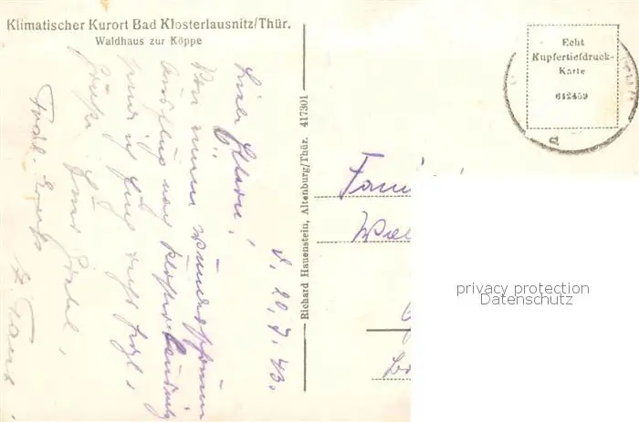 73841518 Bad_Klosterlausnitz Waldhaus zur Koeppe Bad_Klosterlausnitz postalisch gelaufen 1943 Erhaltung siehe scans [FriedD77] [Frierer ]
