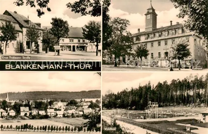 AK / Ansichtskarte 73841527 Blankenhain_Thueringen Ernst Thaelmann Strasse Rathaus Teilansicht Schwimmbad Blankenhain_Thueringen