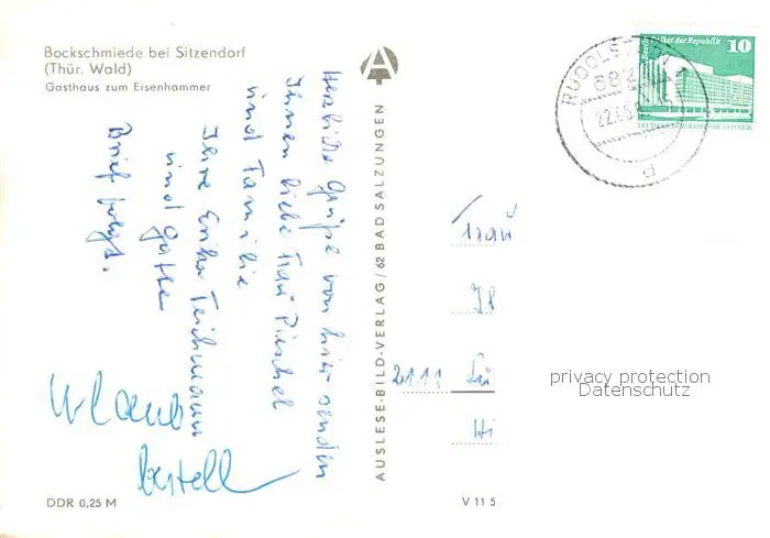 73841578 Sitzendorf_Thueringen Bockschmiede Sitzendorf Thueringen postalisch gelaufen nach 1965 Erhaltung siehe scans [FriedD77] [Frierer ]