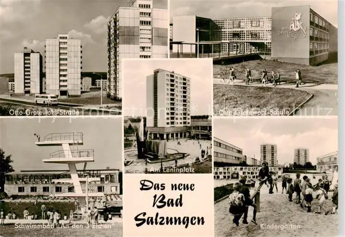 AK / Ansichtskarte 73841601 Bad_Salzungen Otto Grotewohl Strasse Schwimmbad An den 3 Eichen Am Leninplatz Kindergarten Otto Grotewohl Schule Bad_Salzungen
