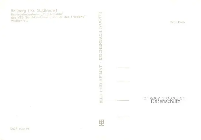73841604 Bollberg Betriebsferienheim Papiermuehle Bollberg postalisch nicht gelaufen nach 1965 Erhaltung siehe scans [FriedD77] [Frierer ]