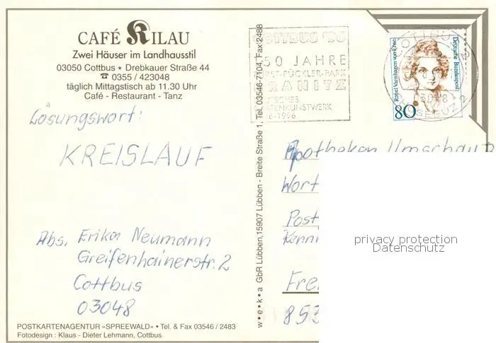 AK / Ansichtskarte 73841629 Cottbus Cafe Kilau Teilansichten Bar Gastraeume Cottbus