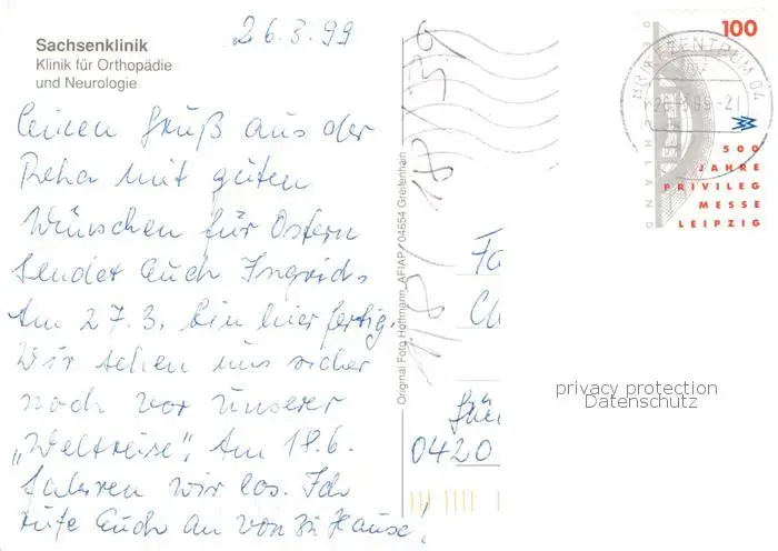 73841664 Bad_Lausick Sachsenklinik Kurhaus Kurhotel Hallenbad Treppe Bad_Lausick postalisch gelaufen 1999 Erhaltung siehe scans [WerneD78] [WernPID7 ]