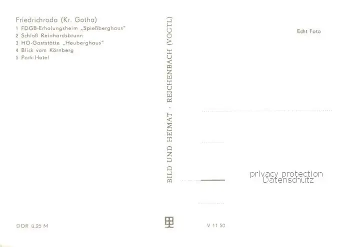 73842067 Friedrichroda FDGB-Erholungsheim Spiessberghaus Schloss Reinhardsbrunn HO-Gaststaette Heuberghaus Blick vom Koernberg Park-Hotel Friedrichroda postalisch nicht gelaufen 1981 Erhaltung siehe scans [FriedD77] [Frierer ]