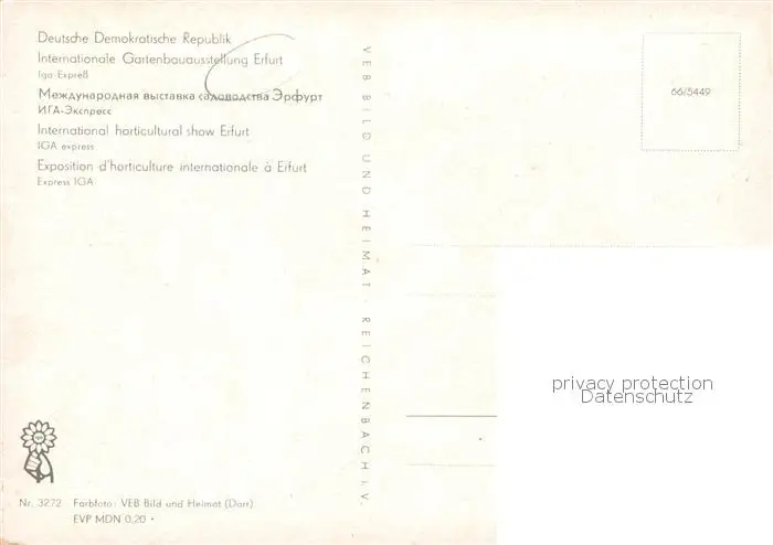 73842073 Erfurt Internationale Gartenausstellung iga-Express Erfurt postalisch nicht gelaufen 1966 Erhaltung siehe scans [FriedD77] [Frierer ]