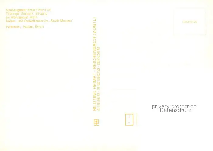 73842077 Erfurt Neubaugebiet Erfurt-Nord Thueringer Zoopark Einang Wohngebiet Rieth Kultur- und Freizeitzentrum Stadt Moskau Erfurt postalisch nicht gelaufen 1990 Erhaltung siehe scans [FriedD77] [Frierer ]