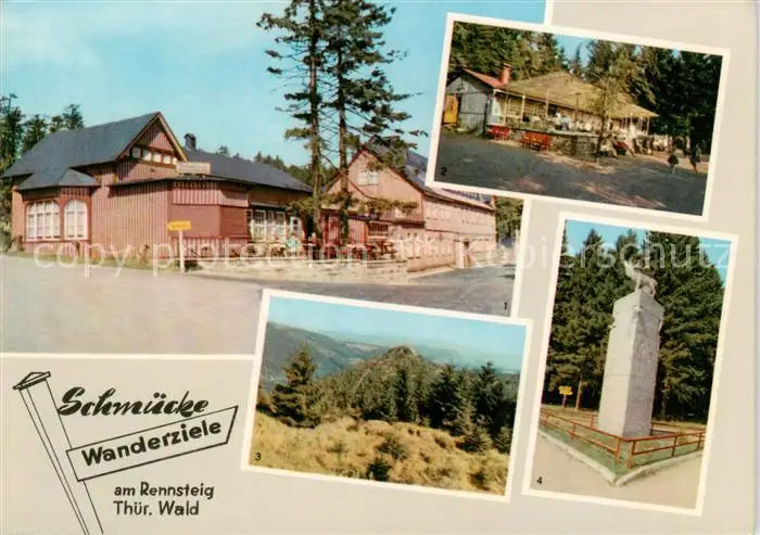 73842170 Schmuecke_Gehlberg_Thueringen Berggasthaus Waldcafe Lenkgrund Waldpartie Monument in Frauenwald postalisch nicht gelaufen nach 1965 Erhaltung siehe scans [WerneD78] [WernPID7 ]