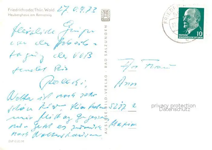 73842177 Friedrichroda Heuberghaus am Rennsteig Friedrichroda postalisch gelaufen 1973 Erhaltung siehe scans [WerneD78] [WernPID7 ]