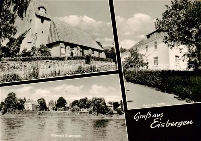 AK / Ansichtskarte 73842187 Eisbergen 1000jaehrige Kirche Rittergut Eisbergen Pension Nolte Eisbergen