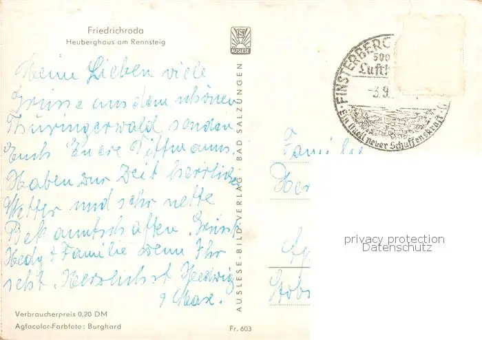 73842213 Friedrichroda Heuberghaus am Rennsteig Friedrichroda postalisch gelaufen nach 1965 Erhaltung siehe scans [WerneD78] [WernPID7 ]