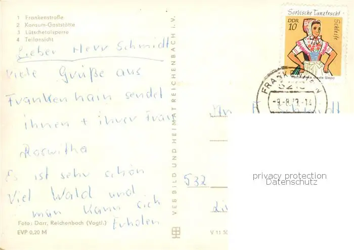 73842216 Frankenhain_Thueringen Frankenstrasse Konsum Gaststaette Luetschetalsperre Teilansicht Frankenhain Thueringen postalisch gelaufen nach 1965 Erhaltung siehe scans [WerneD78] [WernPID7 ]