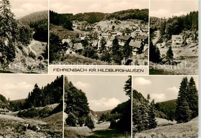 73842813 Fehrenbach_Thueringer_Wald Panorama Teilansichten Fehrenbach_Thueringer_Wald postalisch gelaufen nach 1965 Erhaltung siehe scans [FriedD77] [Frierer ]