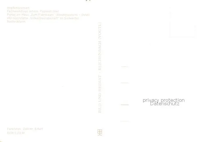 73842842 Arnstadt_Ilm Hopfenbrunnen Fachwerkhaus Portal am Haus Zum Palmbaum HOG Voelkerfreundschaft Neideckturm Arnstadt_Ilm postalisch nicht gelaufen nach 1965 Erhaltung siehe scans [FriedD77] [Frierer ]