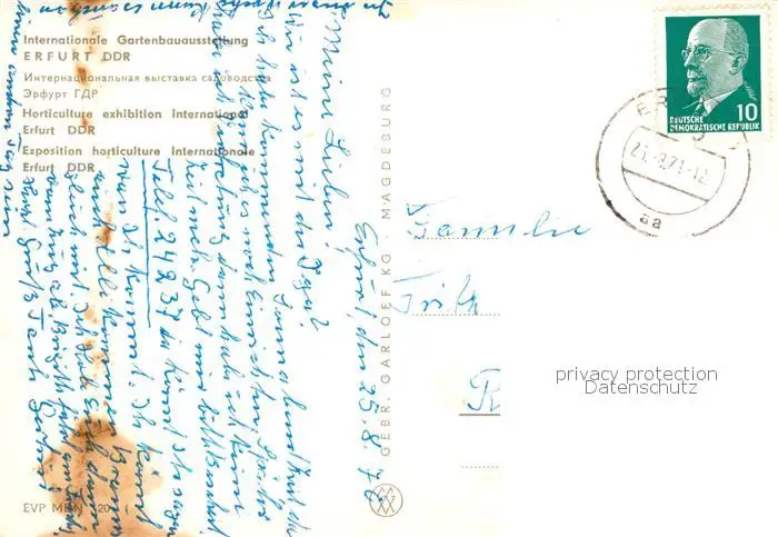 73842847 Erfurt Internationale Gartenbauausstellung Treppe Park Bus Erfurt postalisch gelaufen 1971 Erhaltung siehe scans [FriedD77] [Frierer ]