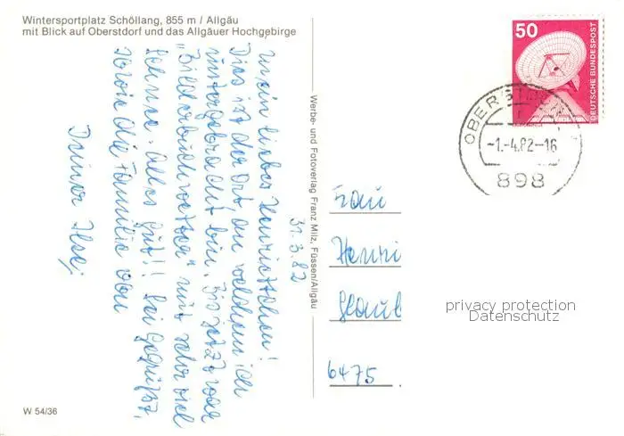 73843556 Schoellang mit Blick auf Oberstdorf und das Allgaeuer Hochgebirge Schoellang postalisch gelaufen 1982 Erhaltung siehe scans [FriedD77] [Frierer ]