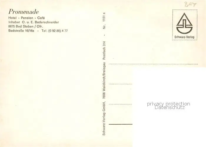 73843606 Bad_Steben Hotel Promenade Bad_Steben postalisch nicht gelaufen nach 1965 Erhaltung siehe scans [WerneD78] [WernPID7 ]