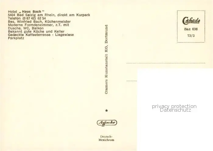 73843626 Bad_Salzig Hotel Haus Bach Gaststube Bad_Salzig postalisch nicht gelaufen nach 1965 Erhaltung siehe scans [WerneD78] [WernPID7 ]