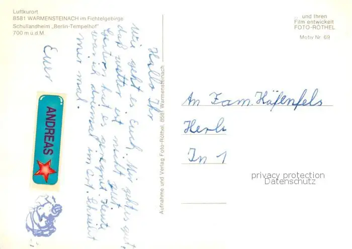 73843644 Warmensteinach Schullandheim Berlin Tempelhof Warmensteinach postalisch nicht gelaufen nach 1965 Erhaltung siehe scans [WerneD78] [WernPID7 ]