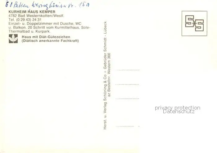 73843646 Westernkotten_Bad Kurheim Haus Kemper Gastraeume Westernkotten_Bad postalisch nicht gelaufen nach 1965 Erhaltung siehe scans [WerneD78] [WernPID7 ]