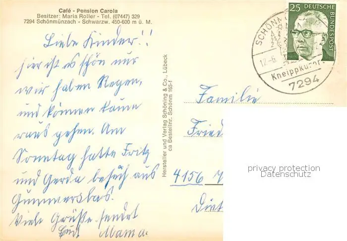73844189 Schoenmuenzach Cafe Pension Carola Schoenmuenzach postalisch gelaufen 1972 Erhaltung siehe scans [WerneD78] [WernPID7 ]