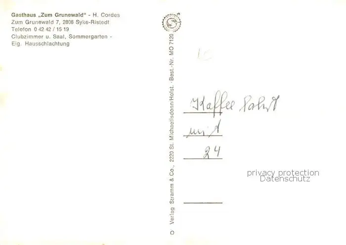 73844197 Ristedt_Syke Gasthaus Zum Grunewald Ristedt_Syke postalisch nicht gelaufen nach 1965 Erhaltung siehe scans [WerneD78] [WernPID7 ]
