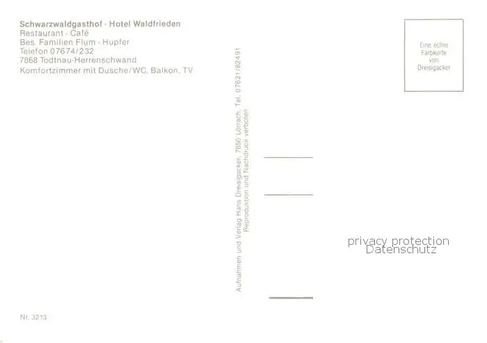 73844407 Herrenschwand_Todtnau Schwarzwaldgasthof Hotel Waldfrieden Gastraum postalisch nicht gelaufen nach 1965 Erhaltung siehe scans [FriedD77] [Frierer ]