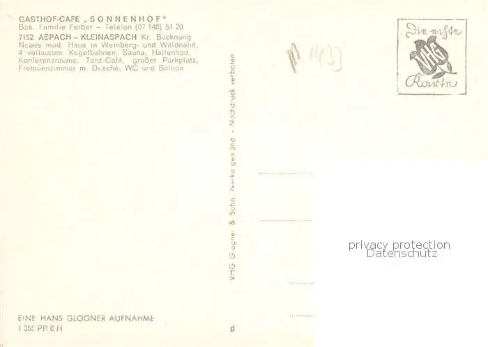 73844814 Aspach_Backnang Gasthof Cafe Sonnenhof Kleinaspach Hallenbad Bar Aspach Backnang postalisch nicht gelaufen nach 1965 Erhaltung siehe scans [FriedD77] [Frierer ]