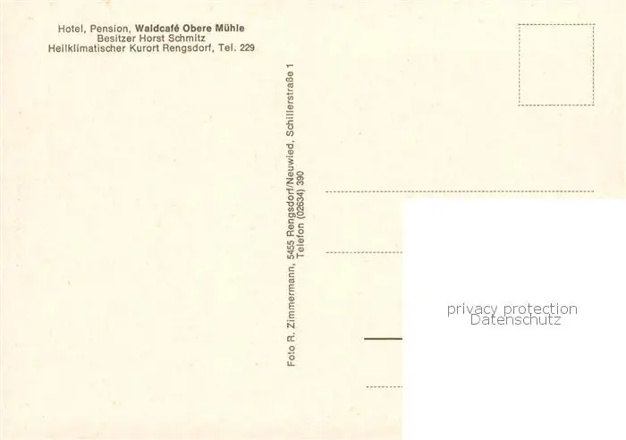 73844816 Rengsdorf Hotel Pension Waldcafe Obere Muehle Schwanenteich Rengsdorf postalisch nicht gelaufen nach 1965 Erhaltung siehe scans [FriedD77] [Frierer ]