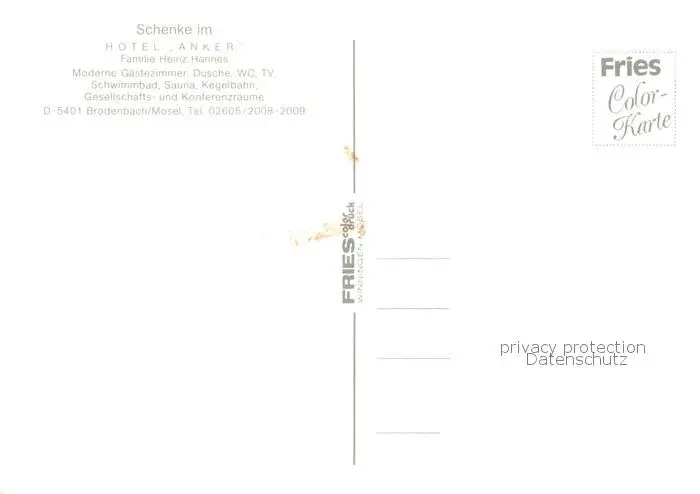 73844842 Brodenbach_Mosel Schenke im Hotel Anker postalisch nicht gelaufen nach 1965 Erhaltung siehe scans [FriedD77] [Frierer ]