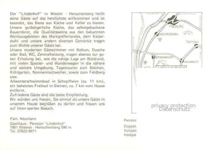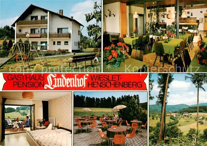 73844869 Wieslet Gasthaus Pension Lindenhof Gastraum Terrasse Zimmer Panorama Wieslet postalisch nicht gelaufen nach 1965 Werbekarte (keine Postkarte) Erhaltung siehe scans [FriedD77] Werbekarte (keine Postkarte)[Frierer ]