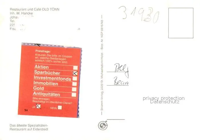 73844916 Toenning_Nordseebad Restaurant Cafe Old Toenn Gastraeume Theke Toenning_Nordseebad postalisch nicht gelaufen nach 1965 Erhaltung siehe scans [FriedD77] [Frierer ]