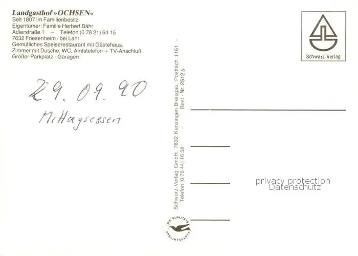 73844924 Friesenheim_Baden Landgasthof Ochsen Friesenheim_Baden postalisch nicht gelaufen nach 1965 Erhaltung siehe scans [FriedD77] [Frierer ]