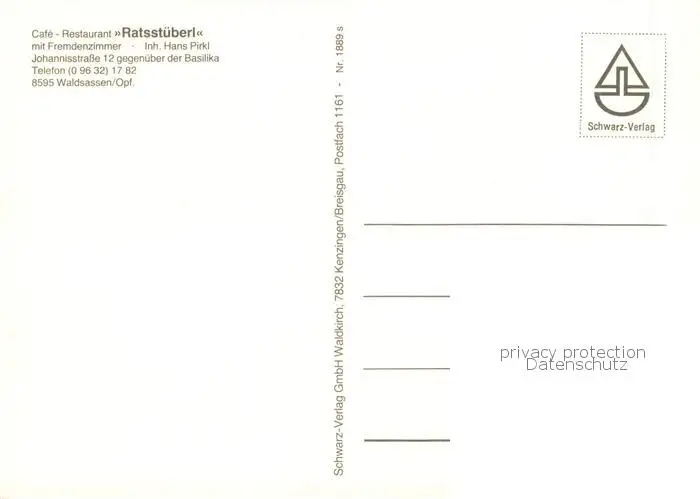 73844940 Waldsassen Cafe Restaurant Ratsstueberl Gaststube Bar Zimmer Waldsassen postalisch nicht gelaufen nach 1965 Erhaltung siehe scans [FriedD77] [Frierer ]