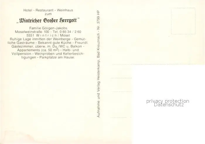 73844954 Wintrich Hotel Restaurant Weinhaus zum Wintricher Grosser Herrgott Gaststube Terrasse Panorama Wintrich postalisch nicht gelaufen nach 1965 Erhaltung siehe scans [FriedD77] [Frierer ]