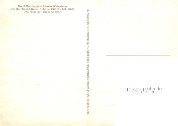 73844973 Bernkastel-Kues_Berncastel Hotel Bernkastels aelteste Weinstube postalisch nicht gelaufen nach 1965 Erhaltung siehe scans [WerneD78] [WernPID7 ]