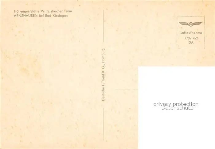 73845007 Arnshausen Hoehengaststaette Wittelsbacher Turm Fliegeraufnahme Arnshausen postalisch nicht gelaufen nach 1965 Erhaltung siehe scans [WerneD78] [WernPID7 ]