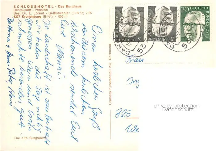 73845031 Kronenburg_Eifel Schlosshotel Das Burghaus Restaurant Kronenburg Eifel postalisch gelaufen 1972 Erhaltung siehe scans [WerneD78] [WernPID7 ]
