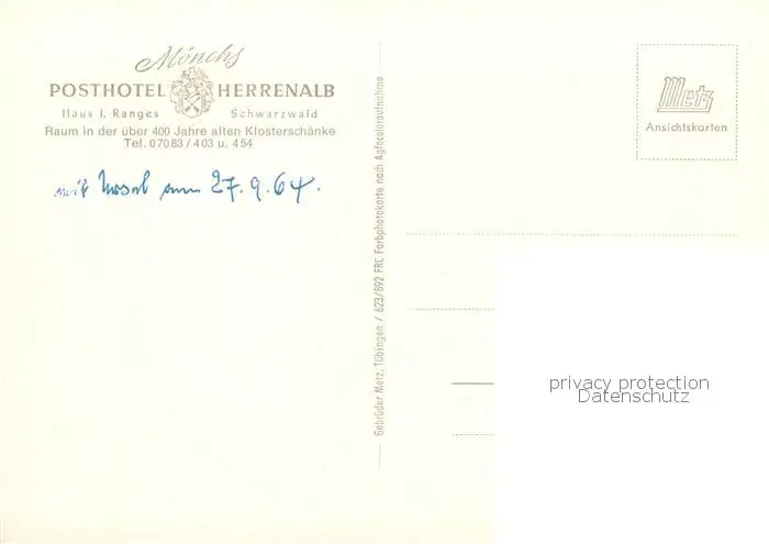 73845037 Herrenalb_Schwarzwald Moenchs Posthotel Herrenalb postalisch nicht gelaufen 1964 Erhaltung siehe scans [WerneD78] [WernPID7 ]