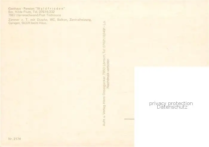 73845061 Herrenschwand_Todtnau Gasthaus Pension Waldfrieden Gastraeume Panorama postalisch nicht gelaufen nach 1965 Erhaltung siehe scans [WerneD78] [WernPID7 ]